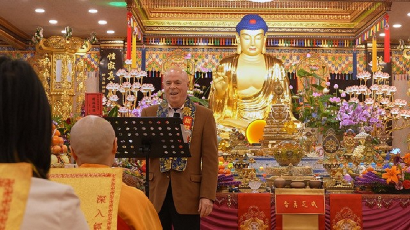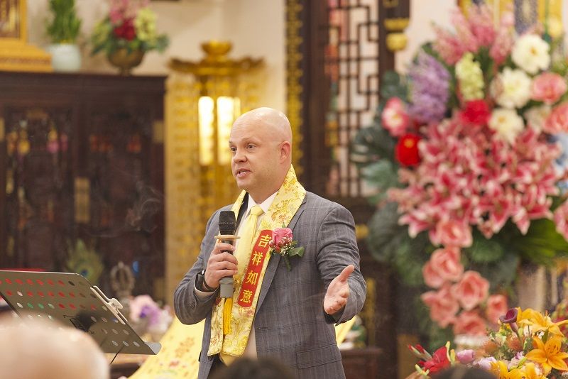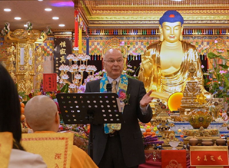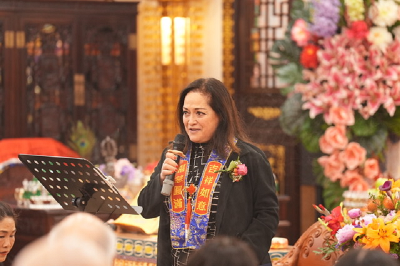 內華達州副州長Stavros S.Anthony致詞時表示:非常榮幸參加慈善寺開光慶典,肯定慈善寺為融合社區不同宗教及族群所作的努力並致贈賀狀。拉斯維加斯大都會警察局代表Ryan Rafferty,和拉斯維加斯市議員Olivia Diaz的代表Anastacia Del Real也分別上臺致詞恭賀慈善寺落成。拉斯維加斯市議員Victoria Seaman的代表Christina Tehahe和內華達州國會眾議員Dina Titus的代表Gipsy Martinez也上臺致詞恭賀慈善寺開光並致贈賀狀。內華達州國會眾議員Susie Lee的代表Alberta Obodai轉達了Susie Lee的祝福,並告知來賓國會眾議員Susie Lee因身在華盛頓無法參加慶典,日後一定會親自至寺廟拜訪恭賀落成。佛教刊物資深編輯James Debate上臺致詞時分享其學佛的心得,並肯定釋證達教尊的深遠願景以及為建設慈善寺而付出的一系列努力。慈善寺護法功德會Alain Uboldi會長致詞感謝各級政府官員們特別抽空前來參加慶祝慈善寺的開光慶典,分享慈善寺的建立得益於南無第三世****和釋證達教尊的遠見,也分享他學習佛陀正法三年多,親眼看到了所有的參與者、佛弟子們,包括他自己學習如何發慈悲心不斷地利益社會上的其他人。釋證達教尊在致詞中對社會各界人士出席慈善寺的開光法會深表感謝,並呼籲大眾虔誠恭聞南無第三世****的法音,真正修行學佛,菩提利生。