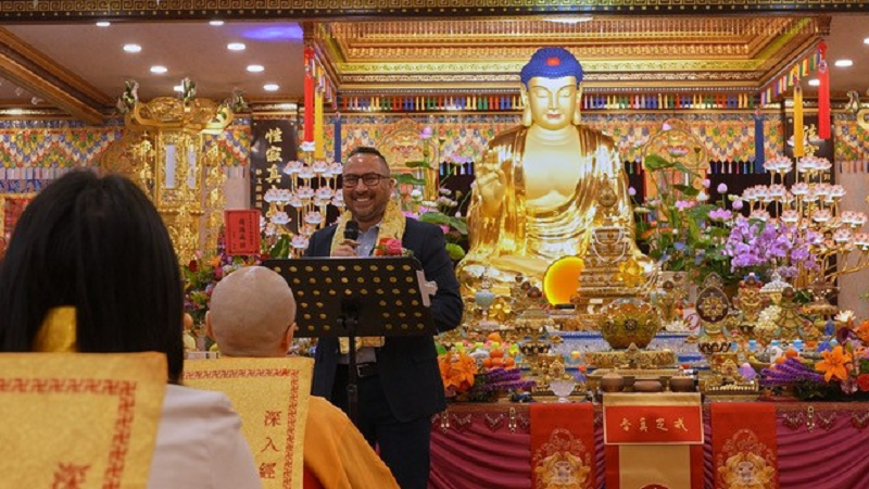 (拉斯維加斯訊)拉斯維加斯慈善寺於1月18日上午舉行開光法會,法會禮請世界佛教總部副主席釋證達教尊主法。現場嘉賓雲集,世界政商名流集聚,內華達州副州長(Nevada Lieutenant Governor)Stavros S.Anthony、國會眾議員Dina Titus特派代表Gipsy Martinez、國會眾議員Susie Lee特派代表Alberta Obodai、拉斯維加斯大都會警察局代表Ryan Rafferty、北加州舊金山藝術館館長謝光中,台灣中華國際佛教聞修正法會會長楊友善、維加斯新聞報社長吳治歐、內華達州華人協會會長顧雅文、拉斯維加斯台灣同鄉聯誼會會長王建平、慈善寺護法功德會會長Alain Ubodhi、佛教刊物資深編輯James Debate、以及拉斯維加斯市議員Victoria Seaman和Olivia Diaz也分別派代表蒞臨參與盛會。此外,寺方禮請內華達州政府、拉斯維加斯市政府各級長官、世界政商名流、善信貴賓共21位剪綵及揭開布幔。現場有來自美國各州、加拿大、中國、泰國、香港、臺灣等不同國家和地區500多人與政商名流親臨現場恭賀,共同見證及慶賀佛教正法寺廟在拉斯維加斯的落成。