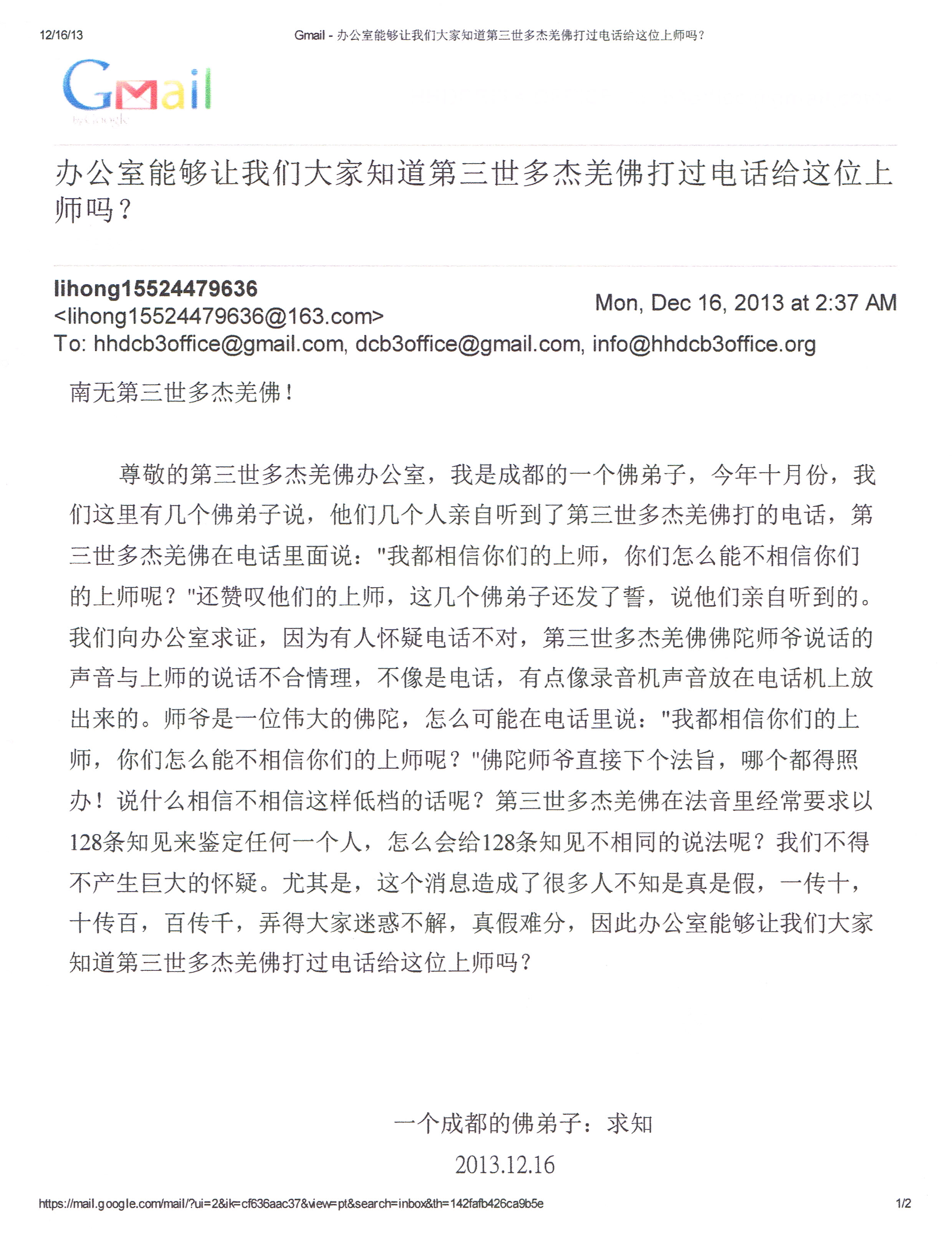附:向办公室请求印证的来信原文